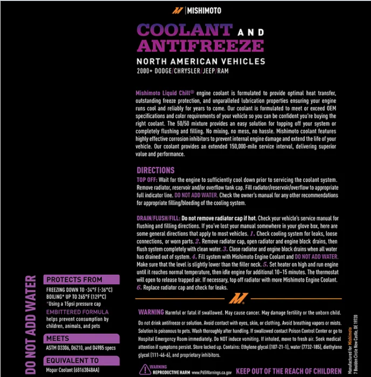 - Pre-diluted 50/50 mixture makes topping off quick and easy